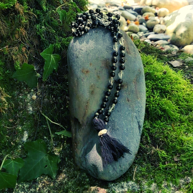 Tourmaline & Cristal De Roche Malas 108 Perles 6 mm